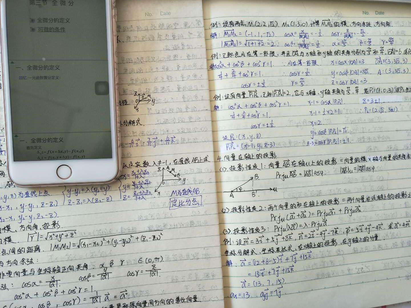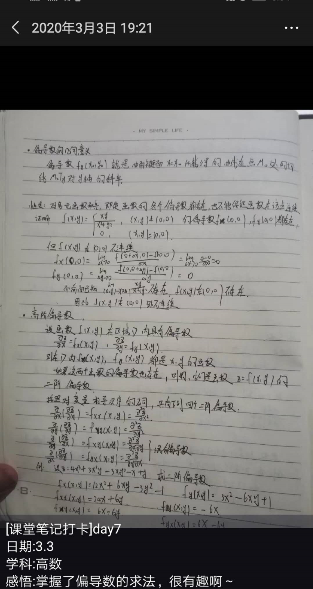 没有教材我开始结合ppt做笔记,笔记做得更精细;”(图2李鑫宇高等数学笔记)、(图3郑秋燕英语整理记录);