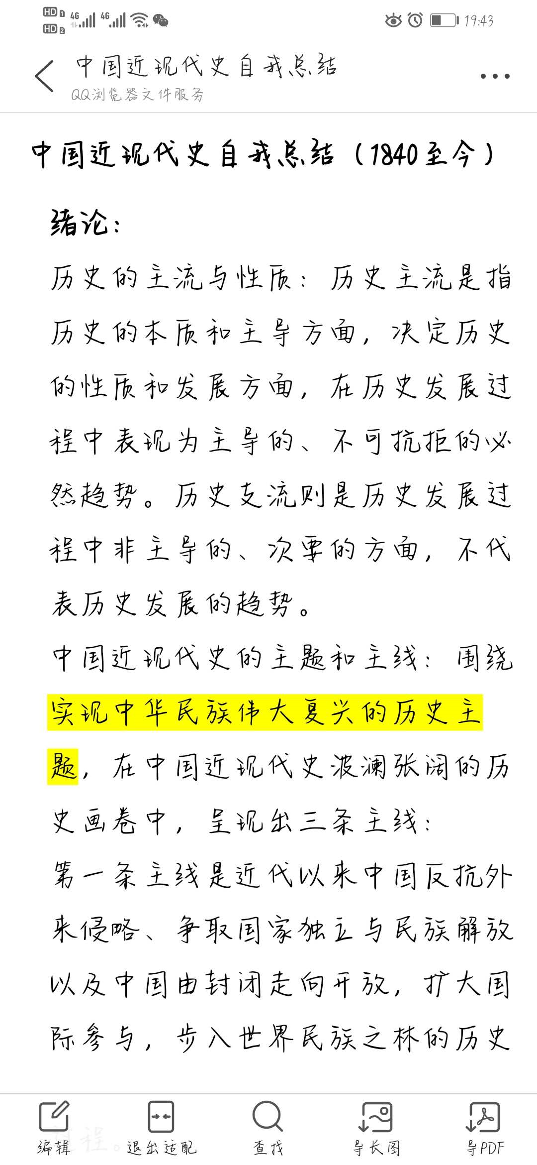 也有同学认真做好中国近现代史纲要课程自我总结(图6田茂剑近代史课程总结)。每天做笔记、进行预习、认真复习;大家自觉在线上教学,取得不少收获。