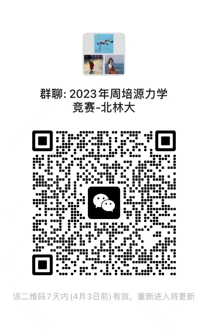 (2)报名参赛的同学请加入“2023周培源力学竞赛-北林大”微信群,方便报名及参赛相关事项的通知。