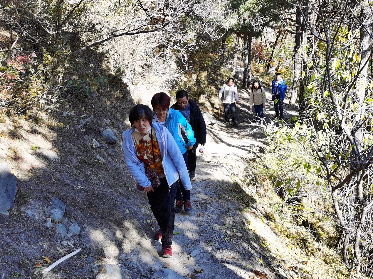 活动中,老师们拾级而上,时不时驻足山间,欣赏美好秋景,用相机记录下这美好的秋色;大家互帮互助,展现出携手共进的良好精神风貌。