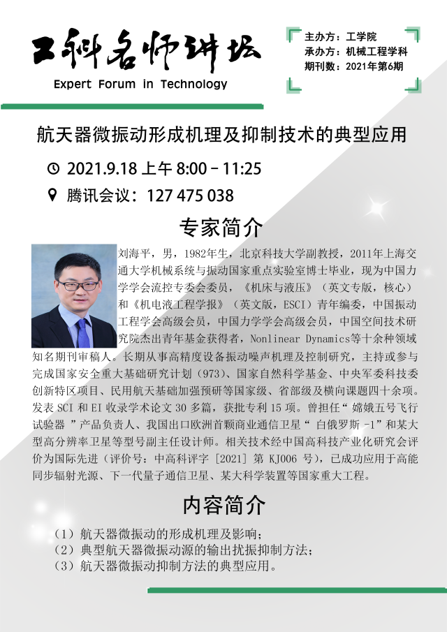 工科名师讲坛2021:航天器微振动形成机理及抑制技术的典型应用