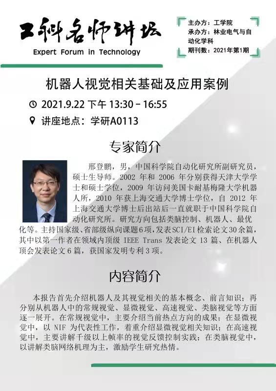 工科名师讲坛2021:机器人视觉相关基础及应用案例