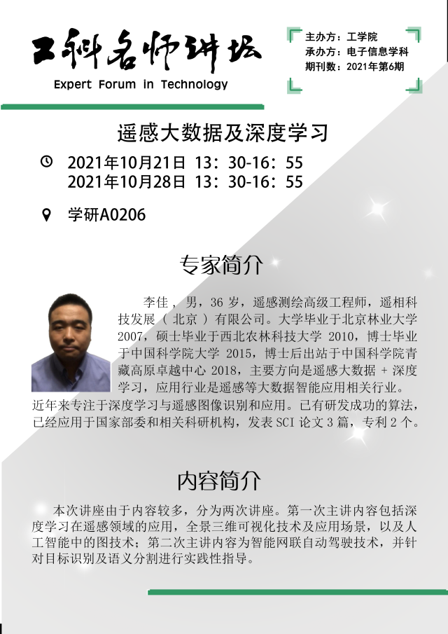 工科名师讲坛2021:遥感大数据及深度学习
