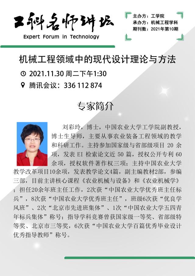 工科名师讲坛2021:机械工程领域中的现代设计理论与方法