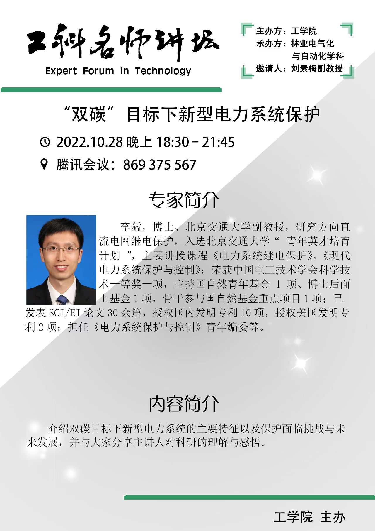 工科名师讲坛2022:“双碳”目标下新型电力系统保护
