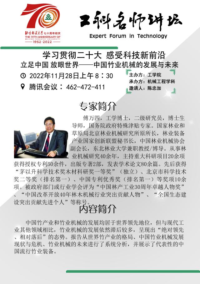 工科名师讲坛2022:立足中国 放眼世界——中国竹业机械的发展与未来