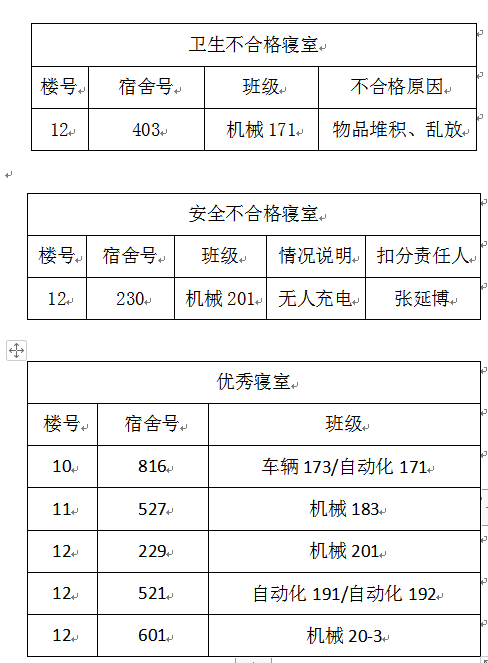 现将第十一周查寝结果公示如下