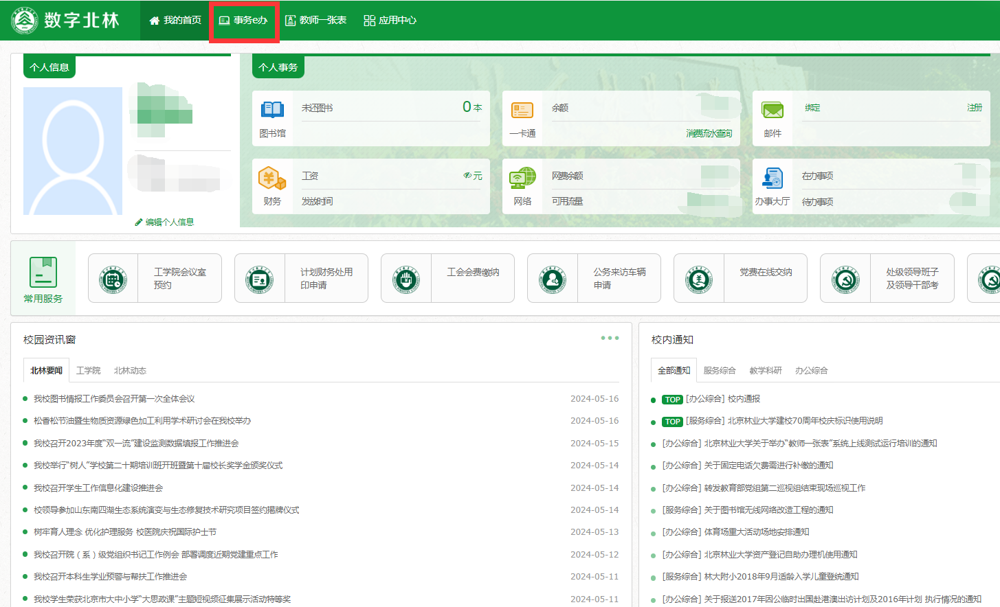 1.登录数字北林(https://i.bjfu.edu.cn/)。