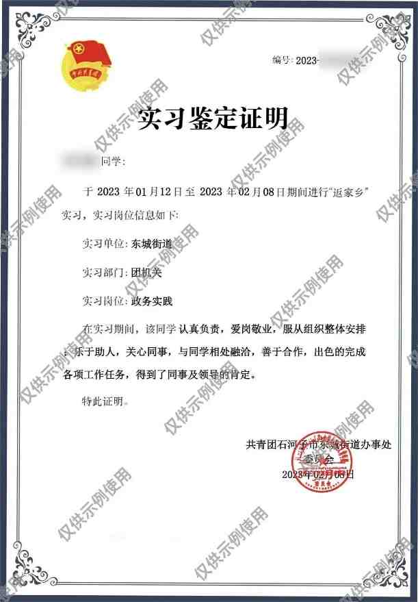 创青春“返家乡”社会实践需提交材料与下方个人实践材料提交要求相同。此外,还需提供相关组织的盖章认定证明(证明形式不限,以当地组织为准,但需加盖公章)。(示例如下图)