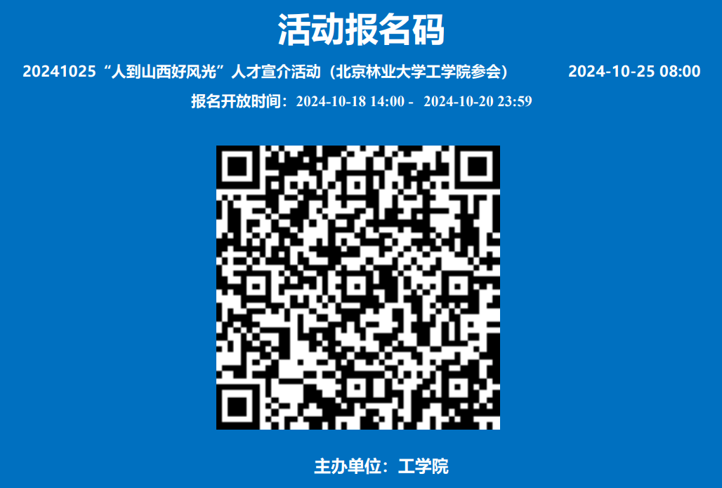 山西省拟于10月25日上午9:00-10:00在中国人民大学明德堂开展“人到山西好风光”人才宣介活动,会后将在中国人民大学世纪馆举办双选会。