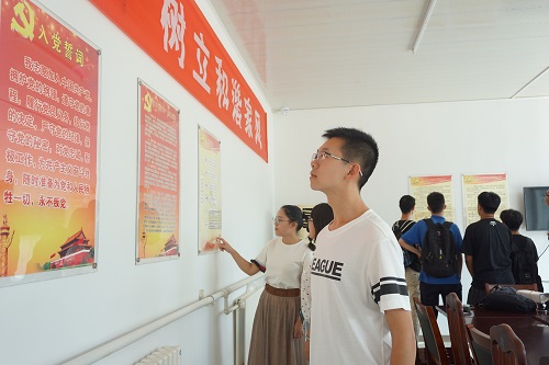 随后,党支部成员在村委干部的带领下前往洪水山村村委会,参观了村委党支部会议室。在会议室中,支部成员在看到村民学习习主席重要讲话后端端正正的签名后,深为感动,表示也要将端端正正的作风刻在骨中,为祖国的建设,民族的复兴努力发光发热。