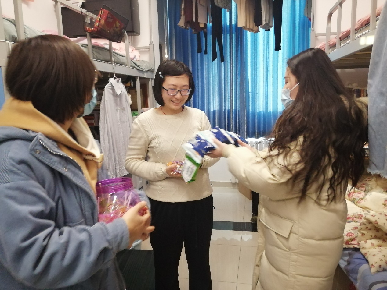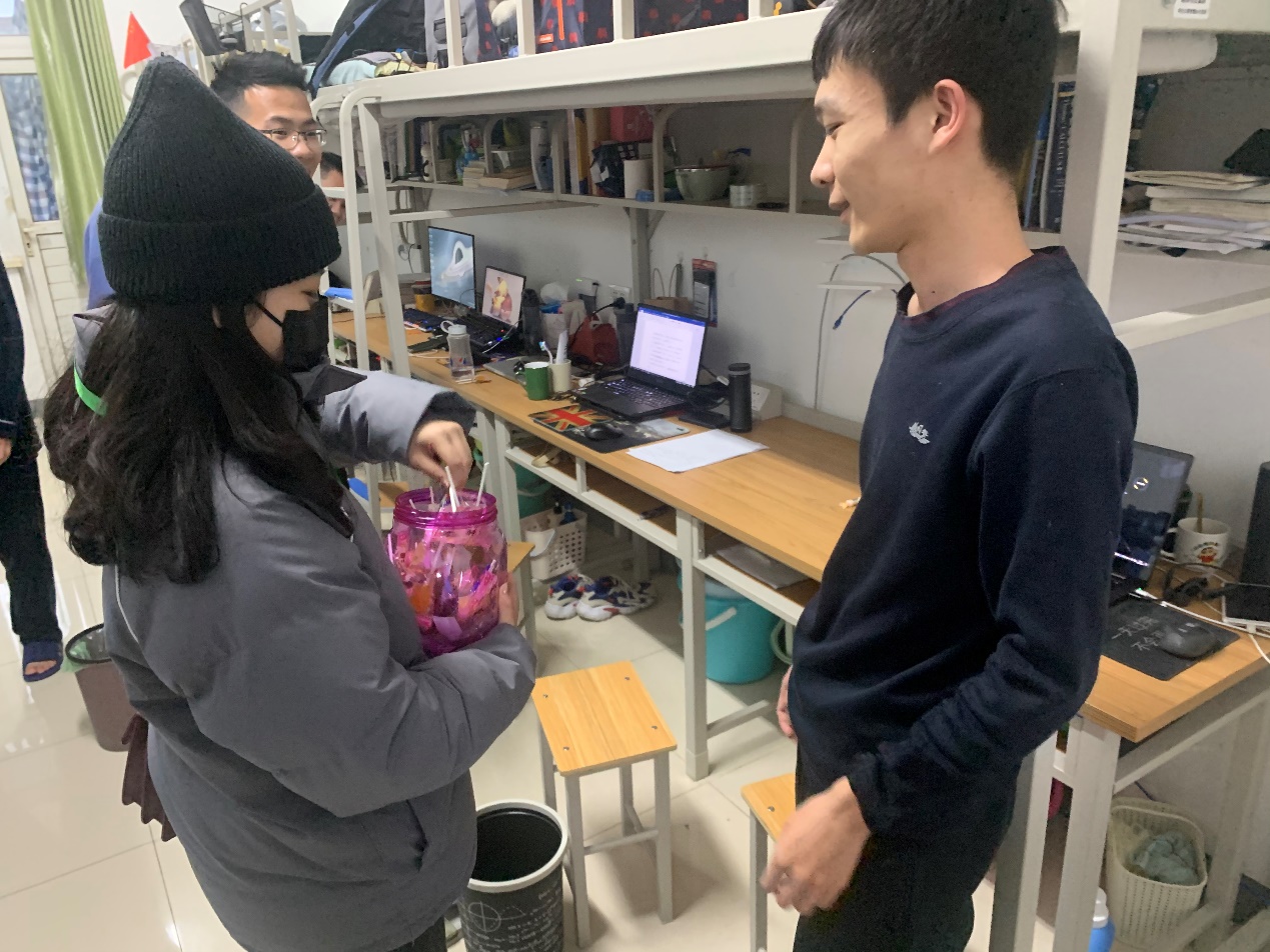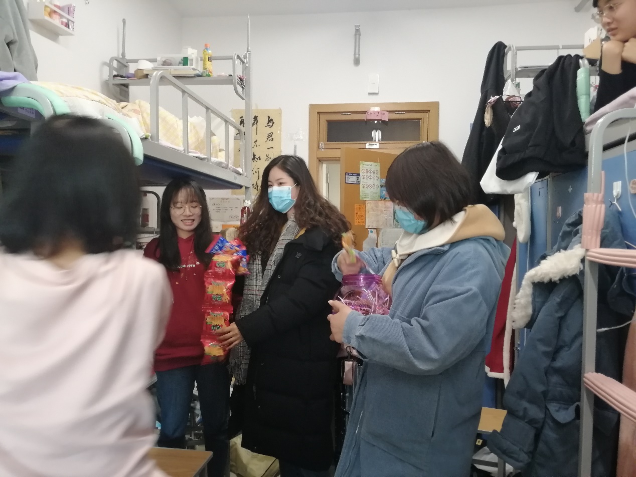 走访过程中,学院辅导员就学生的学习、生活情况进行了细致的交流,了解学生在考研、期末考试后的心理状态,询问学生寒假返乡安排,叮嘱学生按照学校相关规定有序离校返乡,希望学生把宿舍当做自己的“小家”,遵守宿舍管理规定,保持宿舍整洁卫生,共同营造和谐的宿舍氛围。学院还为全体学生购买了跨年礼物,祝福大家节日快乐。