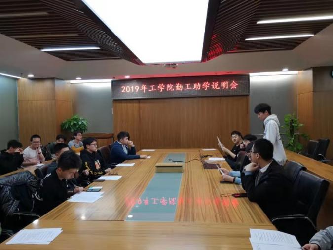 为培养学生自立自强精神,增强学生社会实践能力,加强学院对勤工助学工作的指导,加强学生的思想教育,帮助他们树立正确的劳动观。工学院近日在学研C833举办了2019第一场勤工助学工作说明会