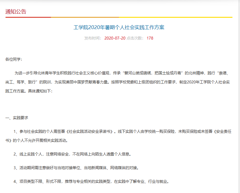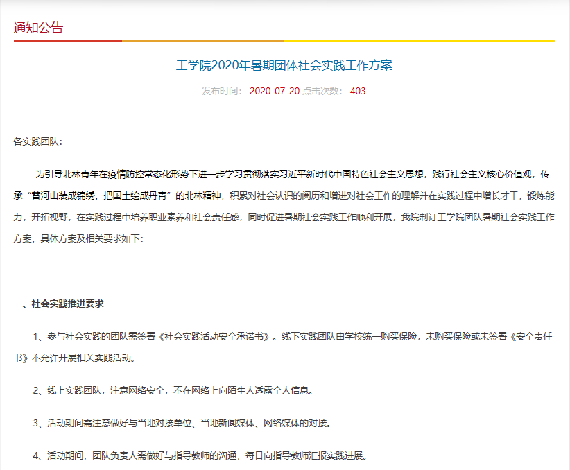 工学院关于组织开展2020年暑期社会实践工作的通知