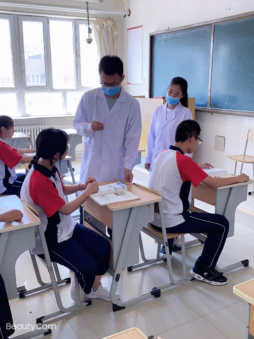 贾骥同学在当地校园进行防疫抗疫志愿服务
