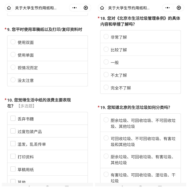 结合北京市实施《北京市生活垃圾管理条例》的背景,“低碳生活,讲义漂流宣讲团”就当代大学生讲义、纸张利用及回收情况,垃圾分类有关知识掌握情况等展开调研,通过制作宣传海报、召开云宣讲会等形式科普垃圾分类知识,传递低碳生活、节约用纸、保护环境的生态理念。