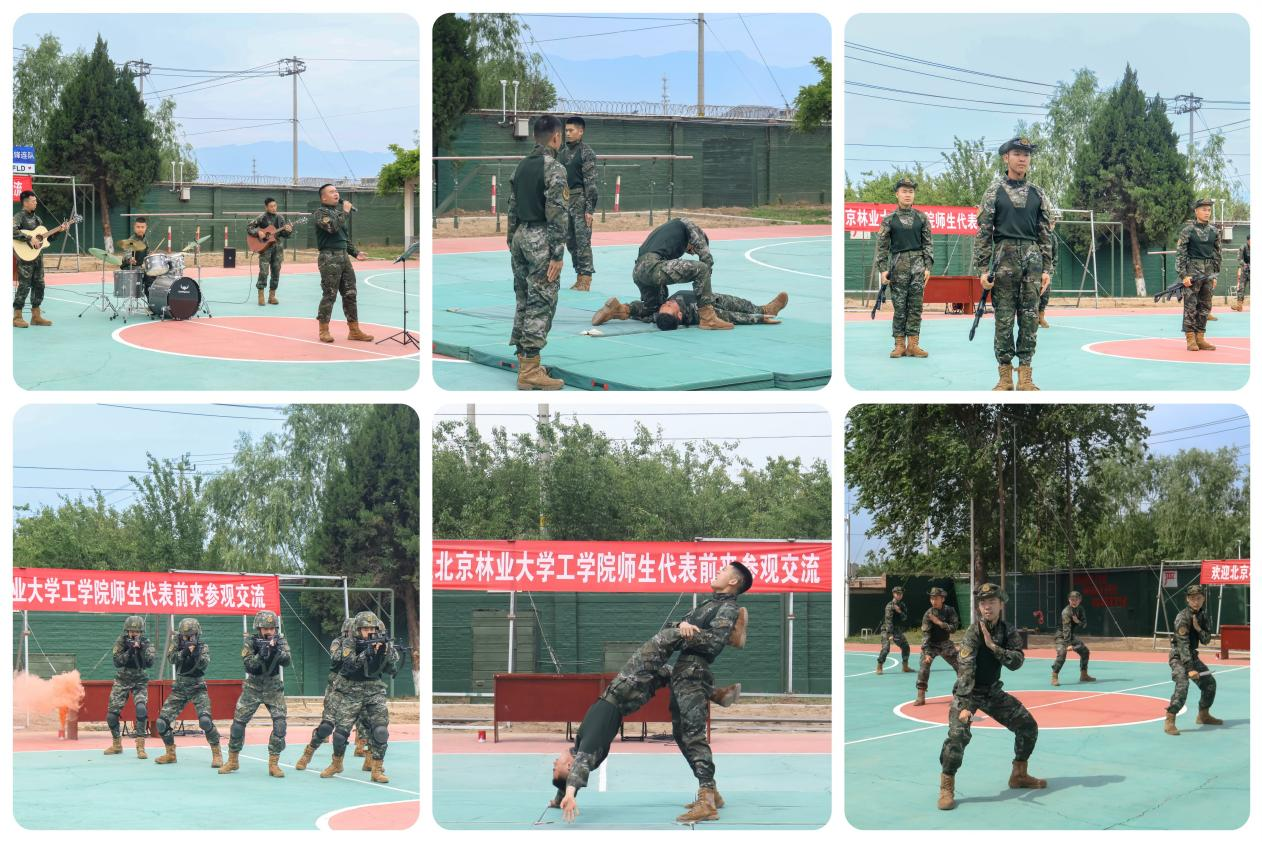 活动在“先锋乐队”嘹亮的歌声中拉开帷幕。训练场上,工学院师生先后观看了战术、刺杀操、擒敌术、匕首操四个军事科目的训练,刚劲有力、行云流水的动作引得师生阵阵掌声。在部队官兵的专业指导下,学院师生近距离接触武装器械,亲身感受装备性能,体验其使用过程。荣誉室里,承载部队光辉历史的锦旗、勋章及珍贵照片陈列其中,学院师生认真聆听讲解,不时驻足凝视,对先锋连队的崇敬之情也愈发深厚。在随后的座谈会上,学院退役大学生胡计稳回顾了自己在部队的服役表现,并介绍了自己复学后的学习工作情况,三位现役士兵代表分享了个人在部队中的成长蜕变及考学提干的感悟。