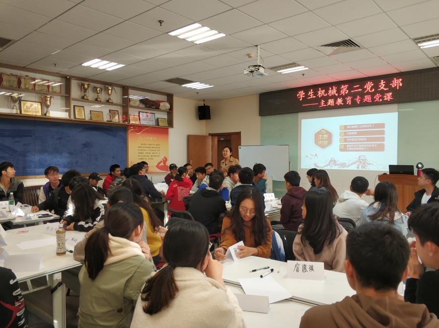 为深入开展“不忘初心,牢记使命”主题学习教育活动,增强支部党员作为新时代青年的党性意识,20191024日下午,北林机械学生第二党支部在北京林业大学学研C834顺利开展了主题教育专题党课。本次主题教育专题党课由支部书记陈洪波老师主讲,围绕着“我们要做什么样的青年”这一主题进行讨论,学生机械第二党支部全体成员共计40余人参加了课程。