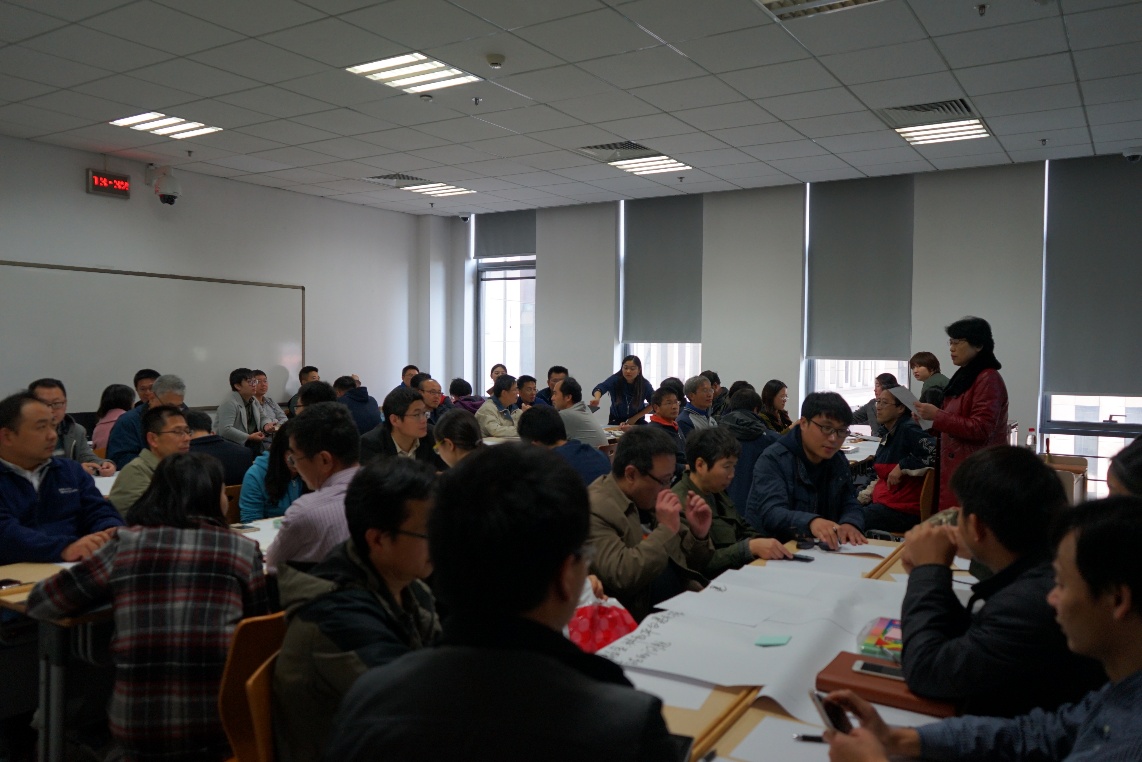 为了着力解决现阶段学院改革发展稳定中的突出问题,落实“不忘初心,牢记使命”主题教育的调查研究要求,1025号下午,工学院在学研A313召开了主题教育调研会,全体教师参加本次会议,调研会由工学院党委书记于翠霞主持。本次调研会借鉴了行动学习中的“世界咖啡”会议形式,采用了“分组循环研讨”模式,汇聚集体智慧,提升了调研的实效性。