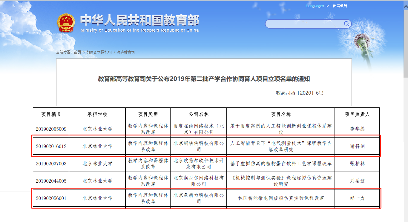 近日,教育部高等教育司公布了2019年第二批产学合作协同育人项目立项名单,我院电气教研室共获批2项:“林区智能微电网虚拟仿真实验课程改革”和“人工智能背景下“电气测量技术”课程教学内容改革研究”。通过这些合作项目,充分利用校外的优质企业资源,提升学生实践动手能力。