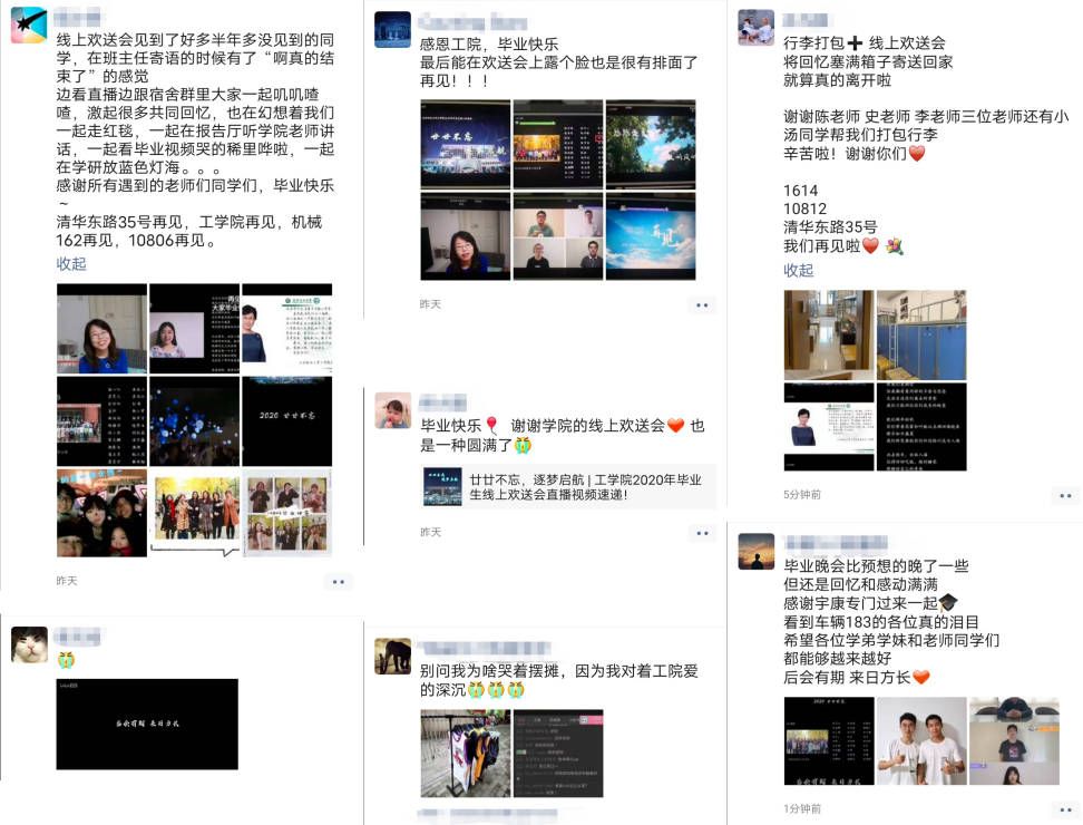 本次欢送会直播观看人数达4841人,受到了广大师生及家长朋友的热切关注。线上欢送会结束后,毕业生们纷纷转发编辑朋友圈并留下真挚的文字做以纪念。言语中满是对学院的不舍、思念与感动。