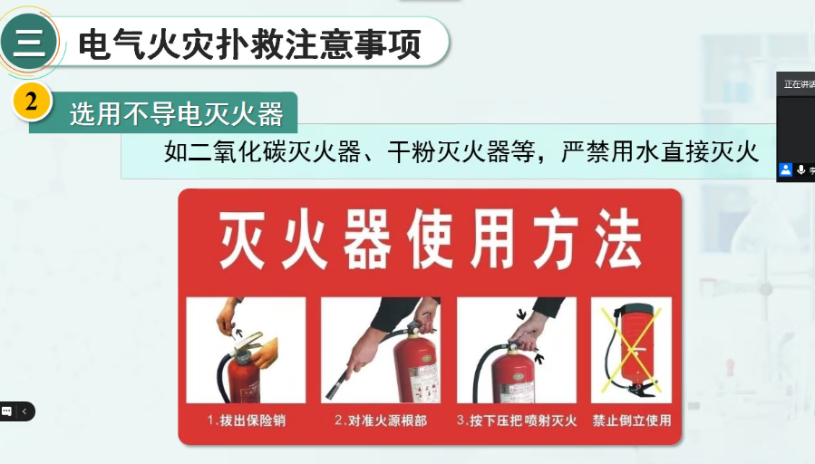 10月20上午,工学院线上举办《实验室电气和机械安全知识培训》,305名教师和研究生参加了培训。培训内容突出体现工学院学科、专业特点和实际需求。培训师从观看电气火灾、机械事故案例开始,顺序讲解了引起电气火灾的主要因素,有效预防电器火灾的方法,规范操作行为避免机械伤害等内容,同时强调,人的马虎、莽撞、逞能等心理是引发安全事故的主要原因,广大师生必须牢固树立 “安全第一、安全无小事”的主观意识,严格遵守各项实验室安全管理制度。
