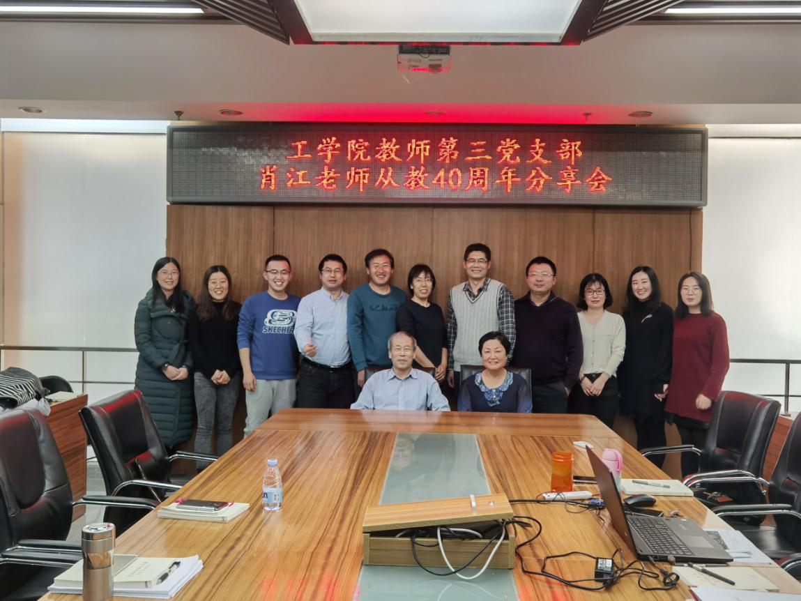 1128下午,工学院教工第三党支部组织开展了“教育教学思想政治学习与分享”活动,会议由支部书记主持,共分为两部分:一是支部党员同志集中讨论了《习近平总书记教育重要论述讲义》的学习收获和体会;二是肖江老师分享从教40年变迁与坚守。