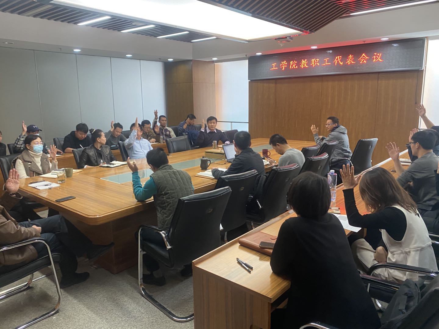 近日,工学院教职工代表大会成功举行,工学院在校教代会代表全部参会,会议主要讨论了聘期方案、绩效发放办法以及代表增选等事宜。会议由工学院教代会主任张军国教授主持。