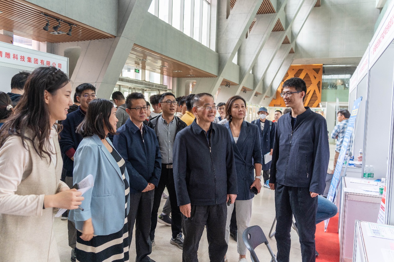 邹国辉在现场询问了校友工作情况,深入了解了人才市场现状及企业需求。他对企业代表表示欢迎和感谢,希望企业多吸纳我校优秀学生,进一步深化合作交流,开启合作共赢新局面。邹国辉与现场学生亲切交谈,鼓励学生学有所用、学有所为,在更广阔的舞台展现北林学子的优良风貌,实现自己的人生价值。