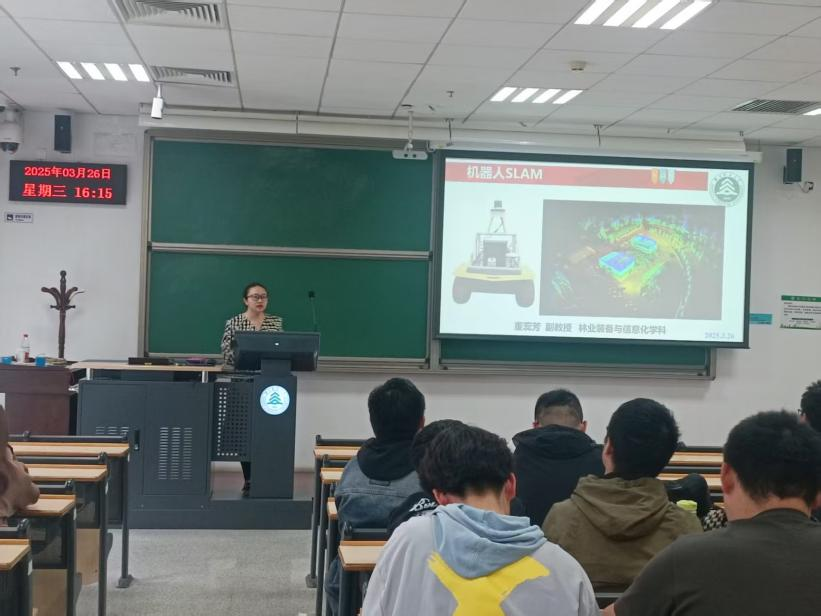 林业装备与信息化党支部的党员教师结合自身科研方向,围绕“科技赋能乡村振兴、智慧助力林业发展”主题,分别介绍了林业智能装备领域的研究进展。老师们从不同角度分享了科研心得,内容涵盖林业机械化、智能机器人、无人机技术等方向,让学生了解了林业装备现代化的前沿发展趋势。