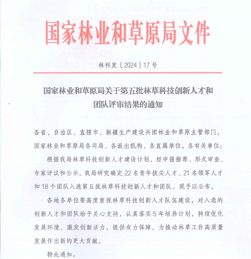 喜报!我院教师团队入选第五批国家林草科技创新团队