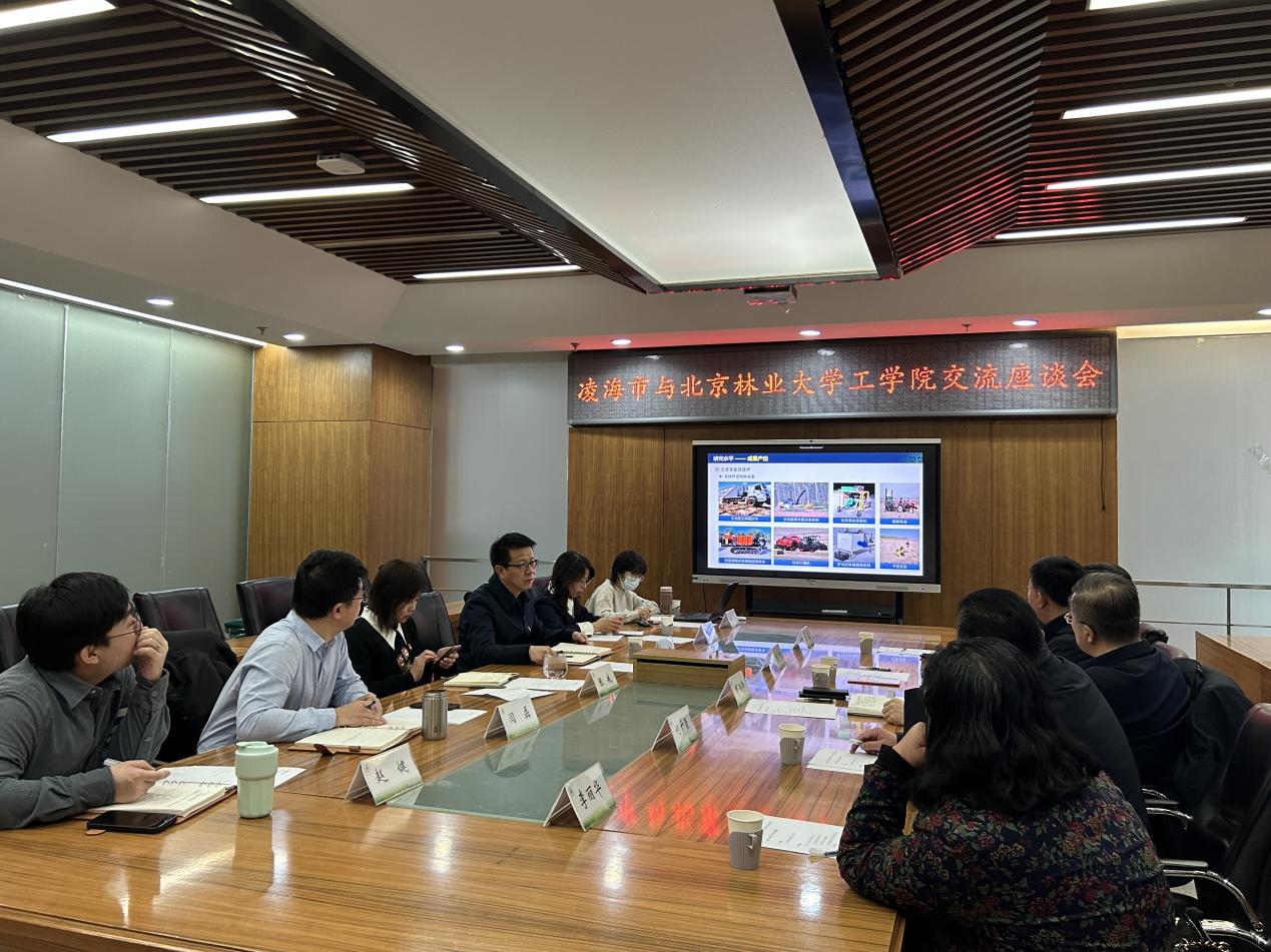 院长赵东学院历史沿革、科研成果、团队建设、社会服务等方面作了详细介绍。他指出,院在林草智能化装备等学科领域上与凌海市的产业经济发展需求契合点多、契合度高,希望能够深入开展更多领域合作,共同探索合作新机制、新模式,促进校地协同可持续发展。