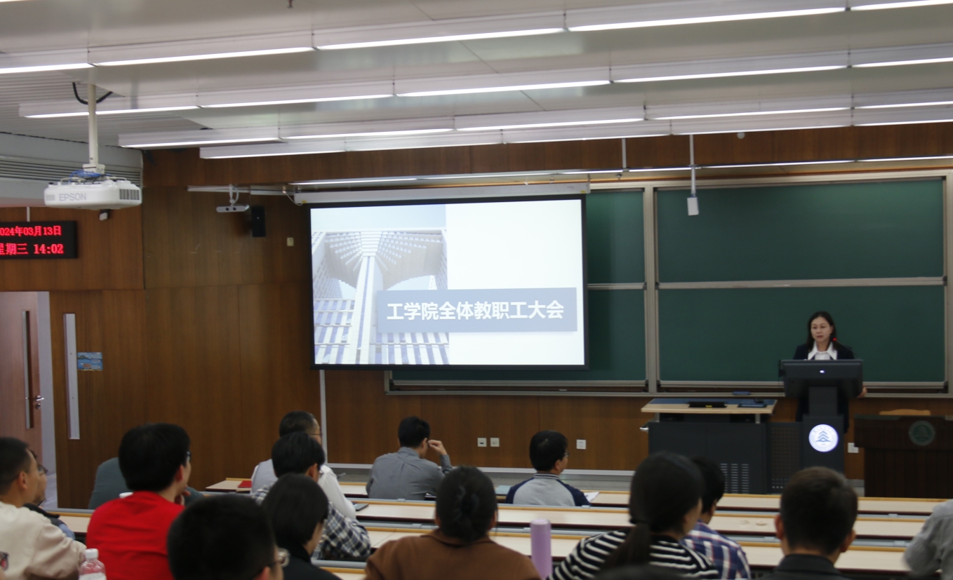 近日,工学院召开全体教职工大会,传达学校2024年工作部署会议精神,部署新学期的工作任务。会议由学院党委书记张戎同志主持。