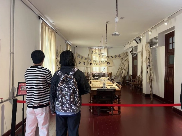 北大红楼建于1916年,不仅孕育了李大钊、陈独秀、毛泽东等大批知识革命先驱,更是见证了新文化运动的迅猛发展五四运动的筹备集结、北京共产党小组成立在党的创建史上具有特殊地位站在五四游行筹备室,看着“誓死力争,还我青岛“反对卖国的廿一条”等条幅标语,党员胡婉君表示仿佛回到了当时风起云涌的时代,切身体会到了革命先驱们为拯救国家于危难的抱负与决心,刻入中国人骨髓之中的爱国精神是取之不尽用之不竭的动力。