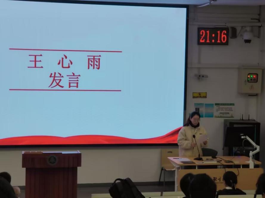 作为发展对象的王心雨、贾怡宁、谢湘昱三名同志依次汇报了自己的基本情况,入党动机,进入党支部以来自己思想方面的进步,以及自己的未来展望。