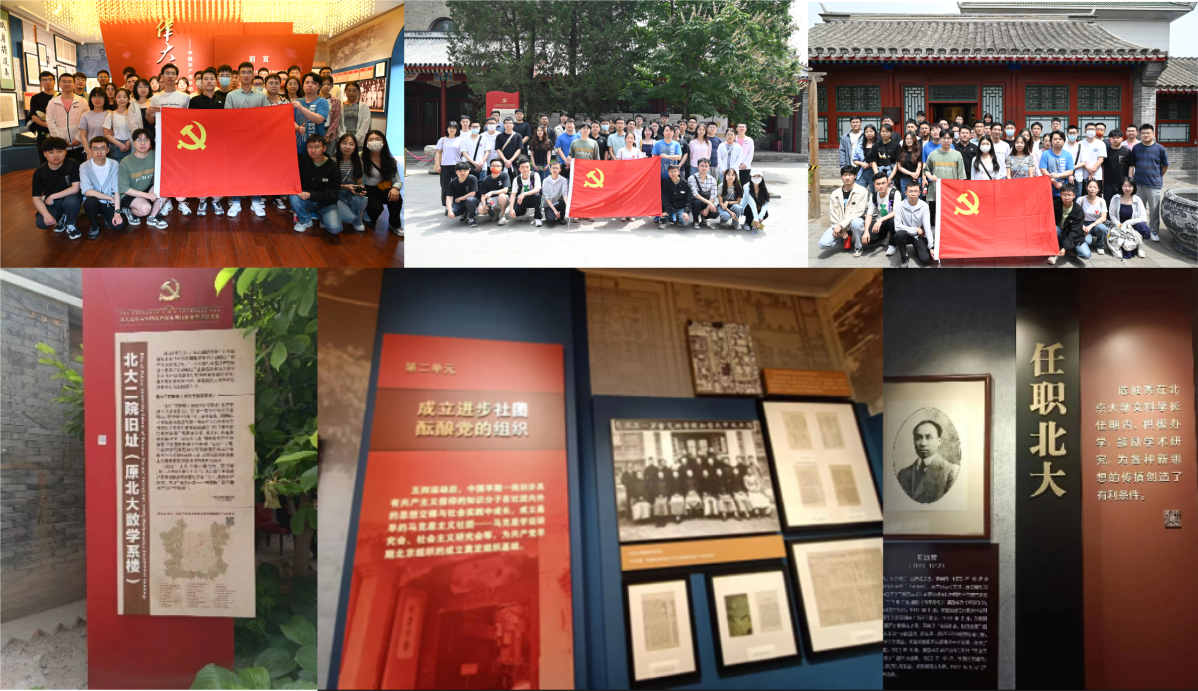 为深入学习贯彻习近平新时代中国特色社会主义思想和习近平总书记在庆祝中国共青团成立 100 周年大会上的重要讲话,引导支部成员学习习近平总书记对青年的寄语,深刻领会五四精神的内涵和时代价值,领悟新时代青年人应该承担的使命和责任,525日,工学院研工第党支部联合研工第四党支部共同参观北大二院旧址、中法大学旧址新青年编辑部旧址三个中国共产党早期革命活动旧址。