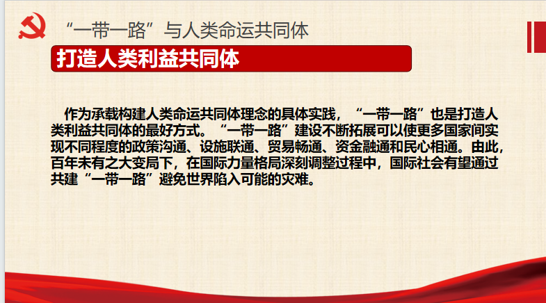 十年栉风沐雨,十年春华秋实。共建“一带一路”源自中国,成果和机遇属于世界。我们支部成员应谨记人民期盼,勇扛历史重担,把准时代脉搏,继往开来、勇毅前行,迎接共建“一带一路”更高质量、更高水平的新发展,建设一个开放包容、互联互通、共同发展的世界,共同推动构建人类命运共同体!