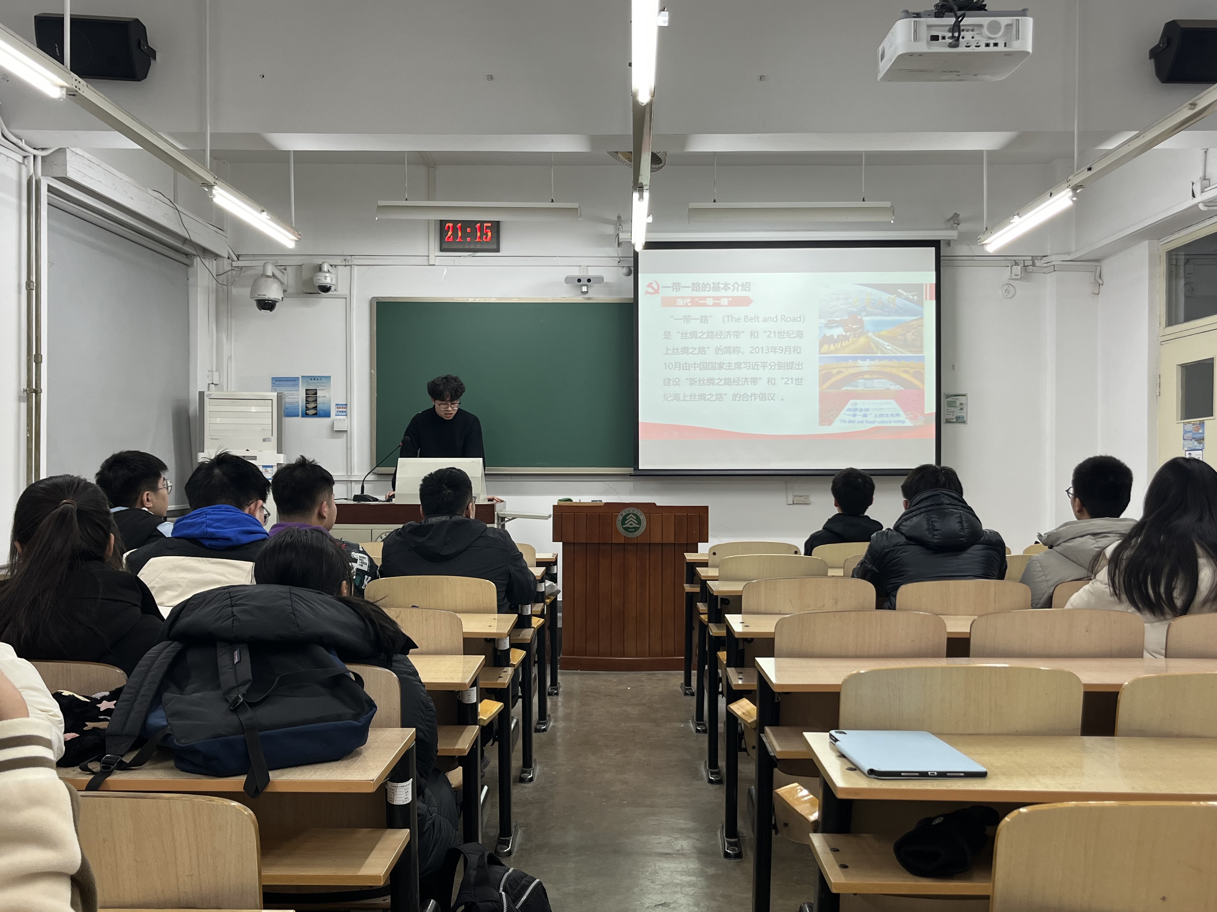 会议开始,主持人从一带一路的前世今生、一带一路的提出背景、一带一路的概念内涵、一带一路的发展成果等方面向参会人员讲解一带一路的相关知识,并播放宣传视频。“开放包容、互联互通、共同发展”的会议主旨深刻总结出10年来,中国在一带一路的政策下的发展成就。宣传视频中展现的中欧班列、蒙内铁路、巴基斯坦卡洛特水电站、中巴经济走廊、中亚天然气管线项目等建设成果无不印证着一带一路的主旨——“开放包容、互联互通、共同发展”。之后,主持人继续讲述一带一路的意义,阐述“一带一路”合作从“大写意”进入“工笔画”阶段,一大批标志性项目和惠民生的“小 而美”项目落地生根的发展进步,并于与会成员深入讨论交流。